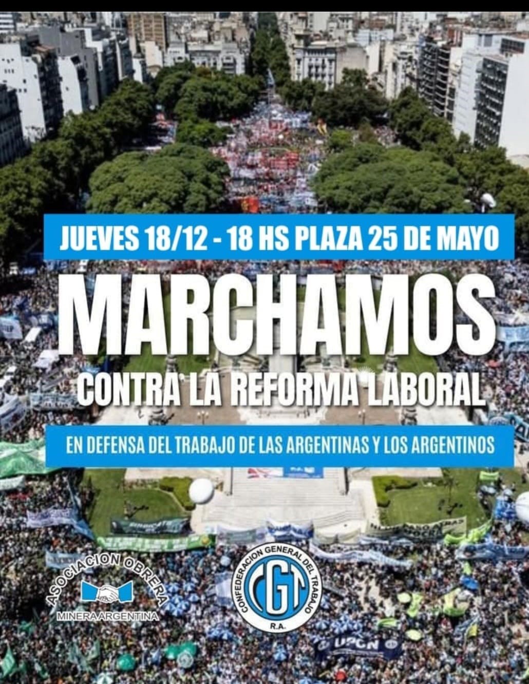 Este lunes, la Asociación Obrera Minera Argentina (AOMA) emitió una circular a todas las seccionales del país adhiriendo a la convocatoria, y pidiendo que los trabajadores y trabajadoras se sumen “en aquellas Provincias, Ciudades y Localidades donde se lleve a cabo movilización a la plaza central de la misma, en representación de nuestra Asociación, en rechazo a la reforma laboral que impulsa el Gobierno, mediante un proyecto que pretende arrasar con derechos históricos y golpear al movimiento obrero organizado”.
