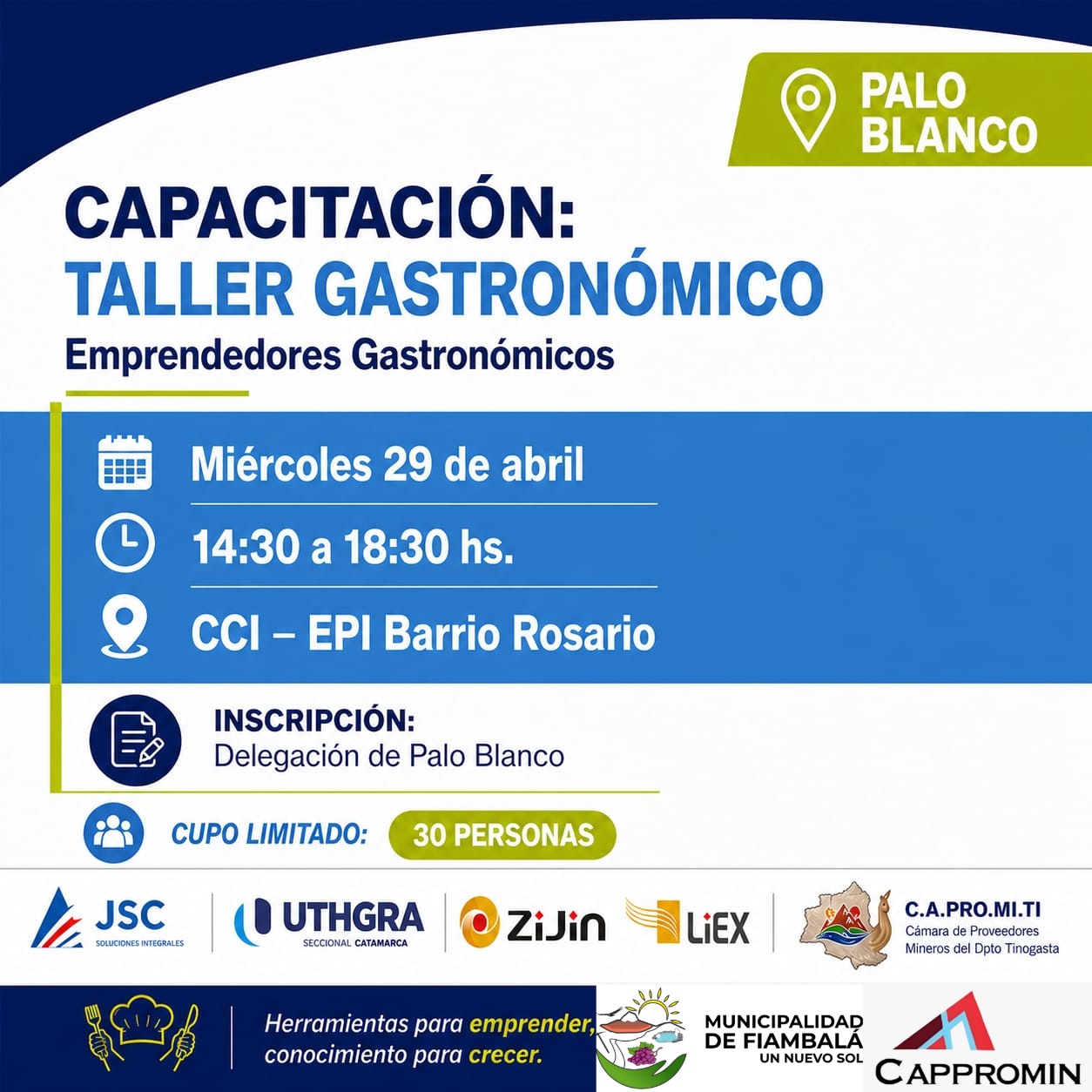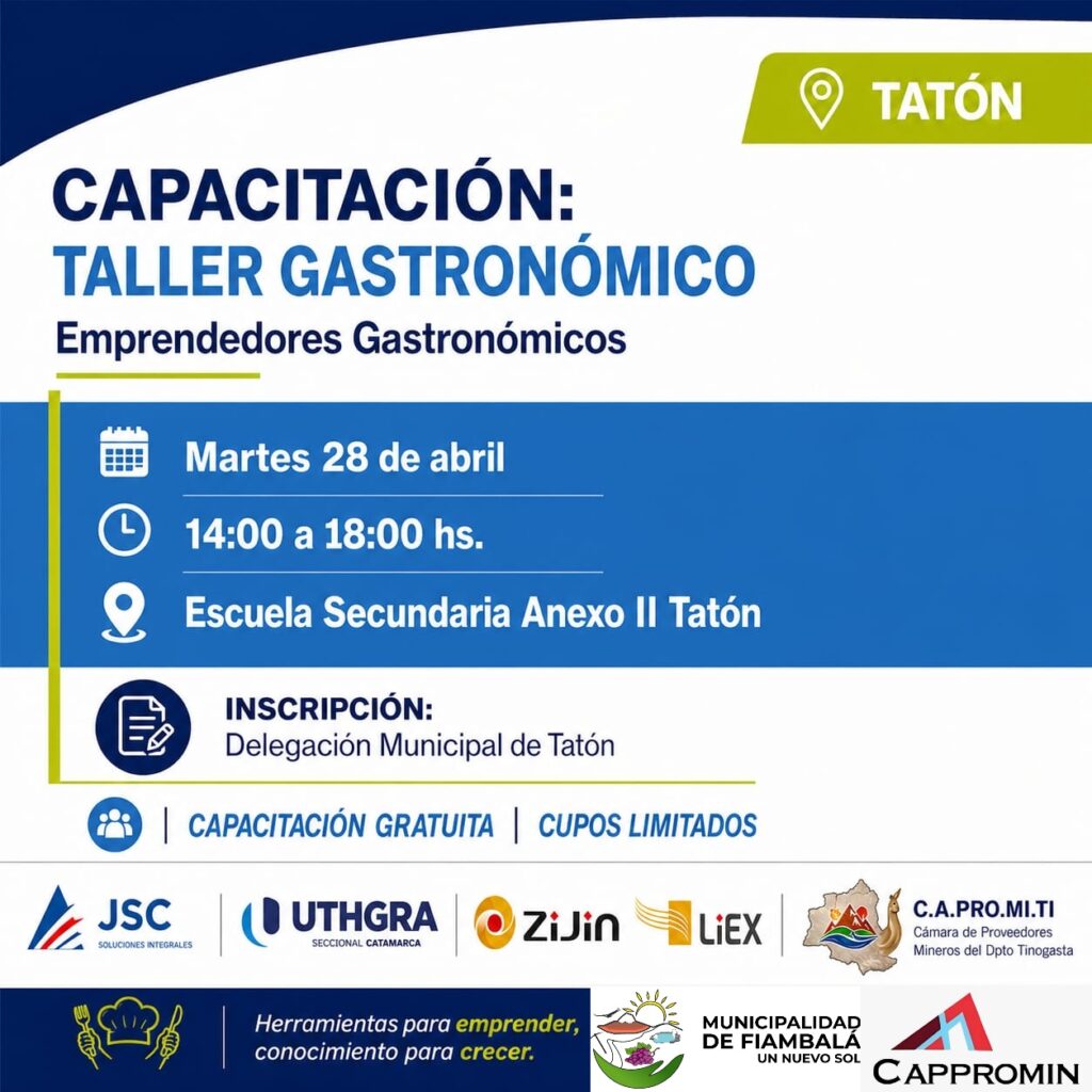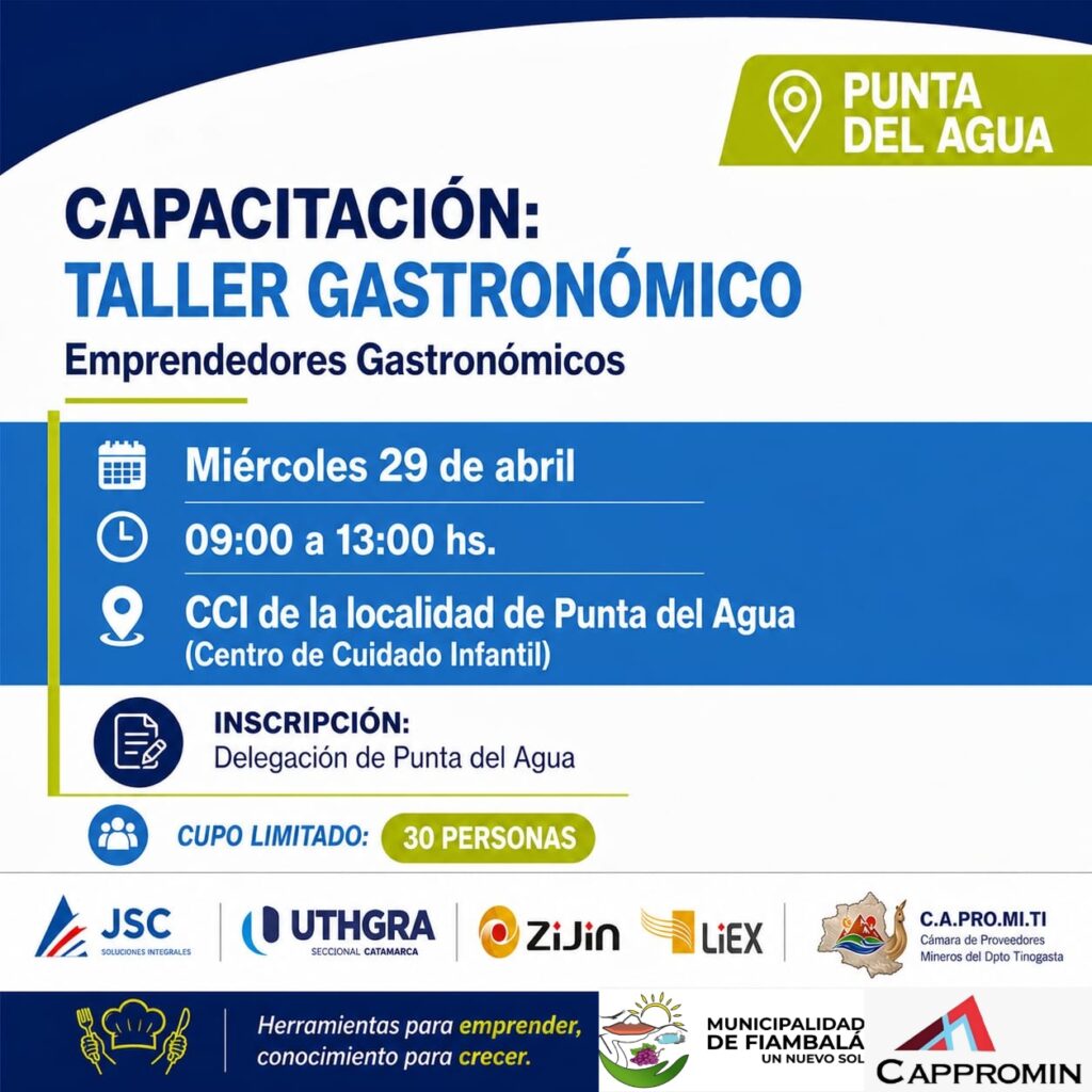 Zijin Liex realizará un curso de gastronomía para emprendedores a partir de mañana en las localidades de Tatón, Punta del Agua y Palo Blanco.