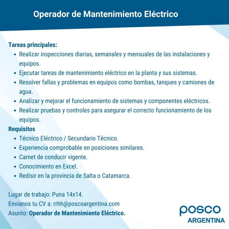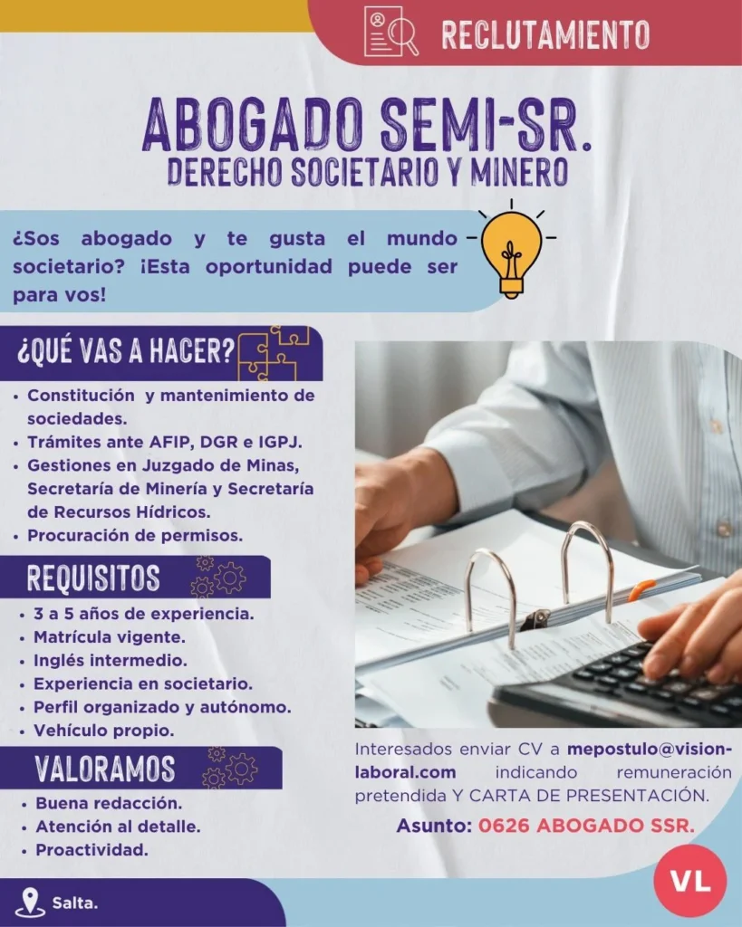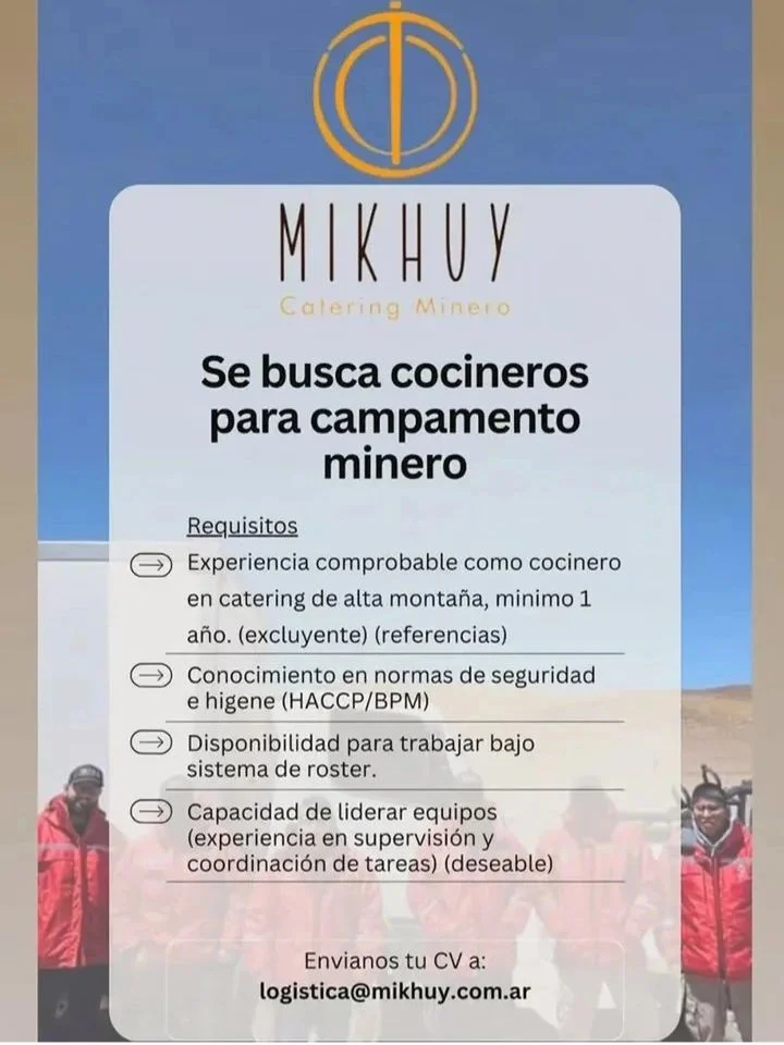 En provincias como Salta, Jujuy y Catamarca, la actividad continúa generando nuevas posibilidades de inserción laboral, en línea con el avance de proyectos y la necesidad de acompañar la expansión minera con más recursos humanos. En ese marco, la difusión semanal de búsquedas se consolida como una herramienta de interés para quienes siguen de cerca el mercado laboral del sector.