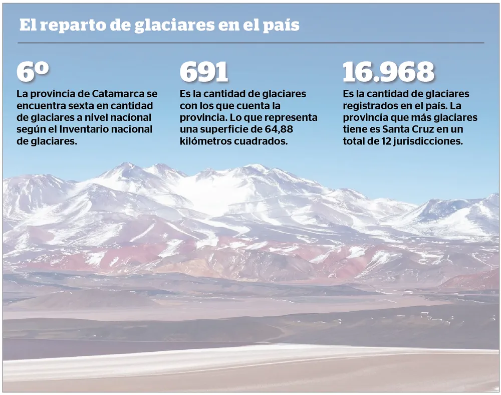 En el caso de Catamarca, el inventario realizado por el IANIGLA (Instituto Argentino de Nivología, Glaciología y Ciencias Ambientales) confirmó la existencia de casi 700 glaciares, la mayoría de tipo periglacial o de escombros, distribuidos en la región de alta montaña.