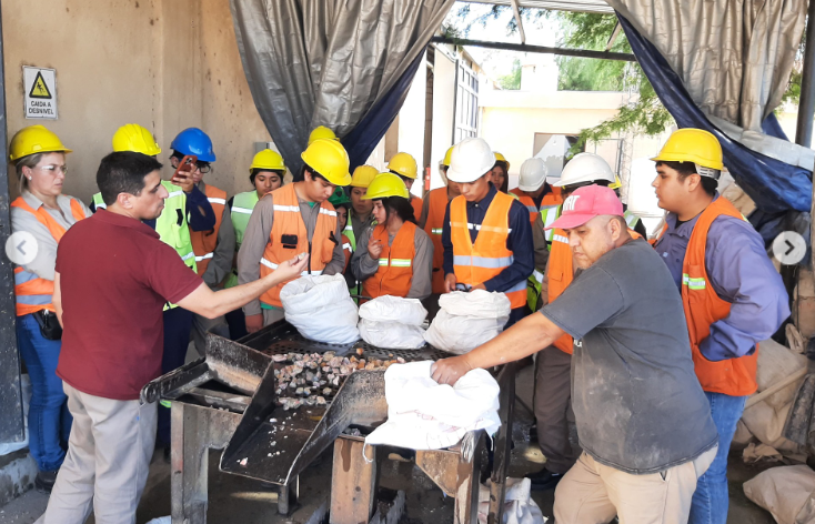 El equipo técnico de CAMYEN explicó cada una de las etapas vinculadas a la geología y caracterización de minerales, control de calidad, seguridad e higiene, métodos de prospección y tareas productivas, además de la gestión de procesos dentro de la cadena de valor minera.