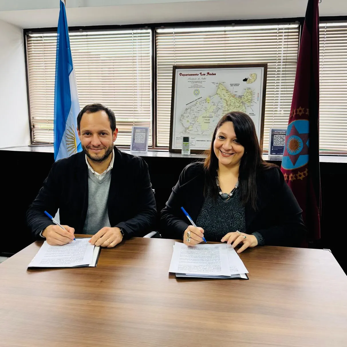 La secretaria de Minería y Energía de Salta, Romina Sassarini, y el titular de la Cámara de Proveedores de Empresas Mineras de Salta (CAPEMISA), Federico Russo, firmaron un convenio de cooperación destinado a fortalecer el Registro Provincial de Proveedores Locales de Empresas Mineras y garantizar el cumplimiento de la ley de Compre Local.