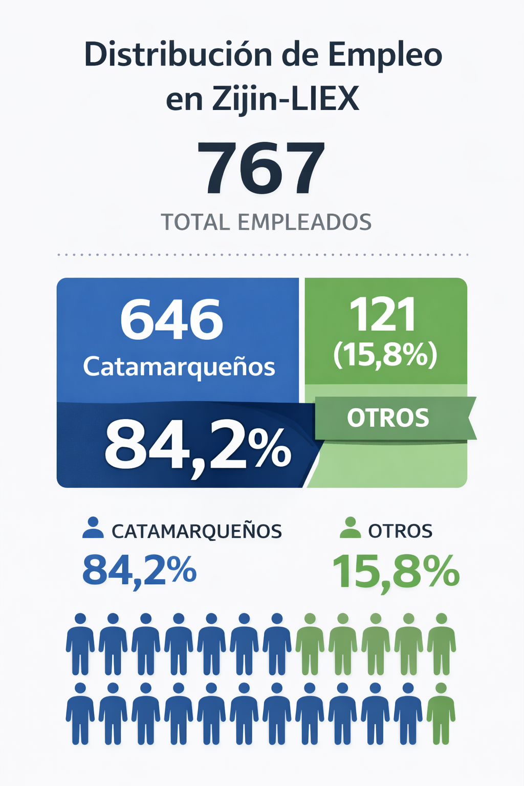 Zijin LIEX S.A. que lleva adelante la producción de litio en el proyecto 3Q consolidó, entre 2024 y 2025, una política activa de priorización del empleo provincial, alcanzando una dotación de 646 trabajadores catamarqueños de un total de 767 trabajadores vinculados al proyecto.